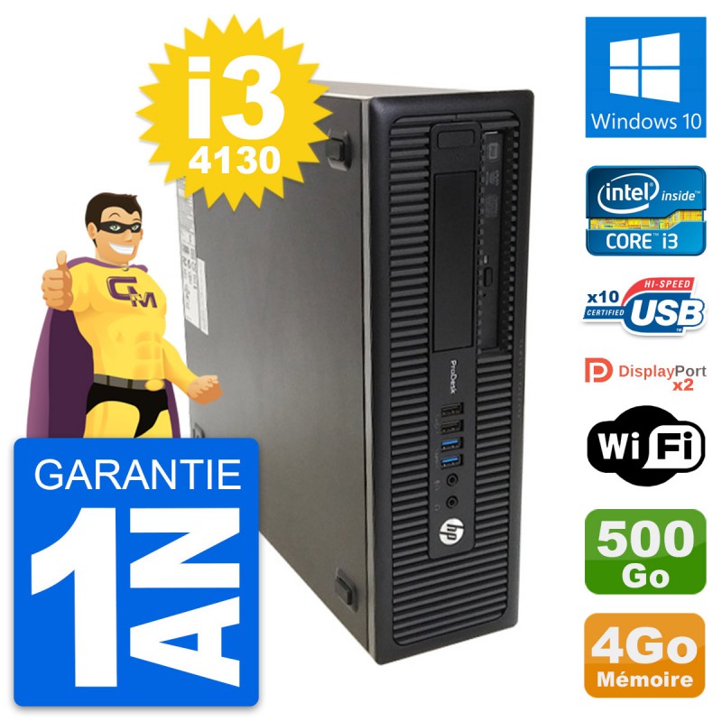PC HP ProDesk 600 G1 SFF Intel Core i3-4130 RAM 4Go Disque 500Go Windows 10 Wifi