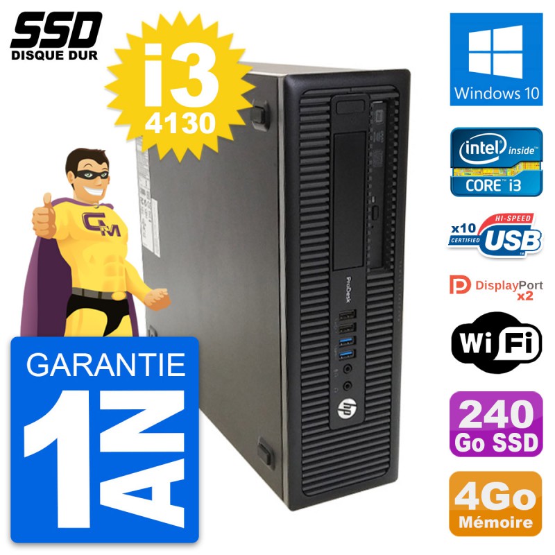 PC HP ProDesk 600 G1 SFF Intel Core i3-4130 RAM 4Go SSD 240Go Windows 10 Wifi