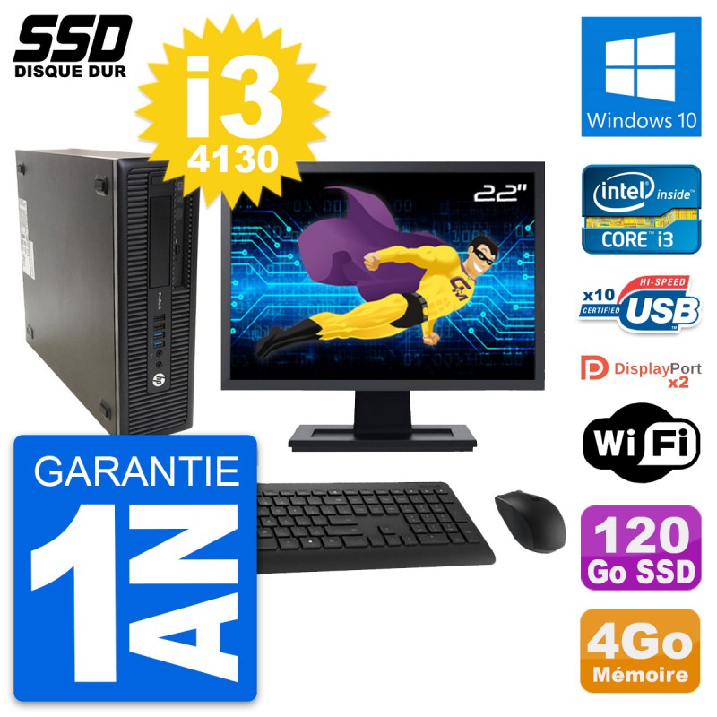 PC HP 600 G1 SFF Ecran 22" Intel Core i3-4130 RAM 4Go SSD 120Go Windows 10 Wifi