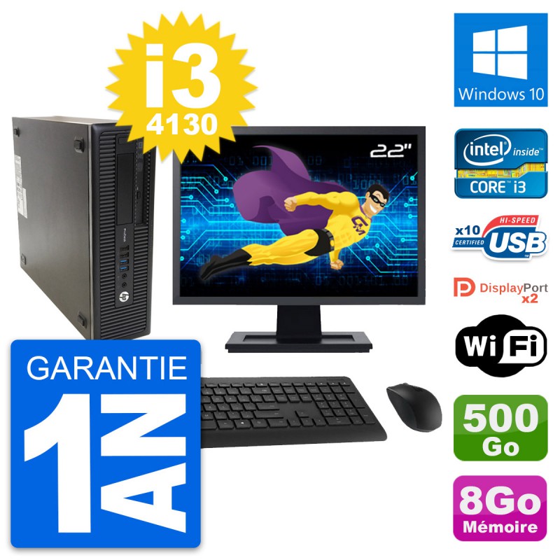 PC HP ProDesk 600 G1 SFF (Slim) - Intel Core i3-4130 3.4 Ghz (3 Mo) - 8 Go DDR3 - Disque Dur 3,5" 500 Go - Graveur DVD - Clef Wifi USB - Windows 10 - Livré avec Ecran 22" + clavier + souris (Marques et modèles variables) - Garantie 1 an.