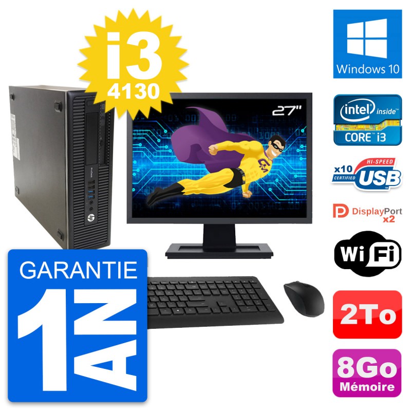 PC HP ProDesk 600 G1 SFF Ecran 27" i3-4130 RAM 8Go Disque 2To Windows 10 Wifi