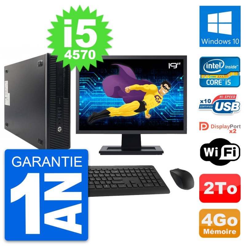 PC HP ProDesk 600 G1 SFF Ecran 19" i5-4570 RAM 4Go Disque 2To Windows 10 Wifi
