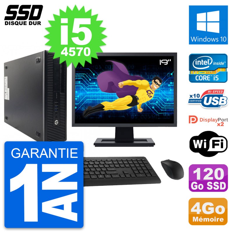 PC HP ProDesk 600 G1 SFF (Slim) - Intel Core i5-4570 3.2 Ghz (6 Mo) - 4 Go DDR3 - Disque Dur SSD 120 Go - Graveur DVD - Clef Wifi USB - Windows 10 - Livré avec Ecran 19" + clavier + souris (Marques et modèles variables) - Garantie 1 an.