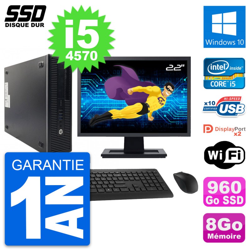 PC HP 600 G1 SFF Ecran 22" Intel Core i5-4570 RAM 8Go SSD 960Go Windows 10 Wifi