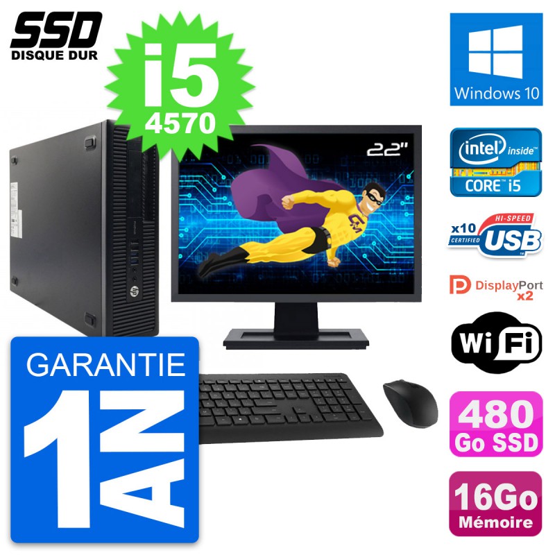PC HP ProDesk 600 G1 SFF Ecran 22" i5-4570 RAM 16Go SSD 480Go Windows 10 Wifi