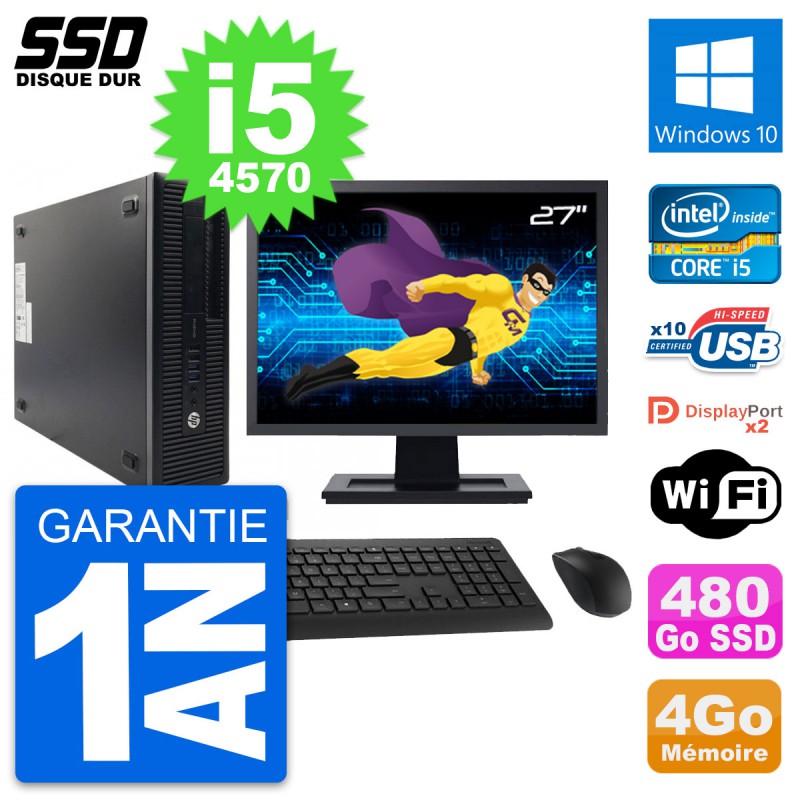 PC HP 600 G1 SFF Ecran 27" Intel Core i5-4570 RAM 4Go SSD 480Go Windows 10 Wifi
