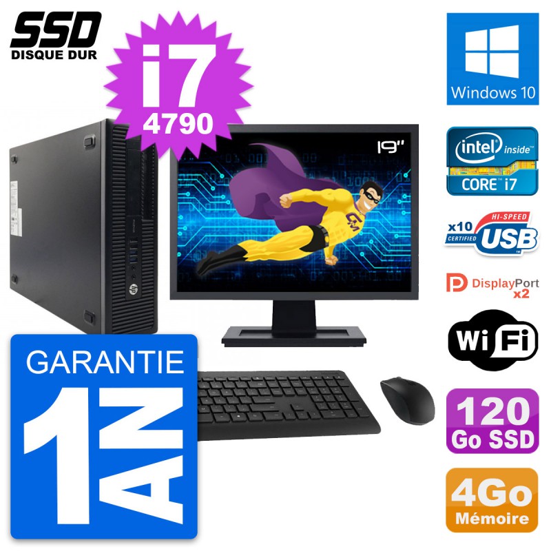 PC HP ProDesk 600 G1 SFF (Slim) - Intel Core i7-4790 3.6 Ghz (8 Mo) - 4 Go DDR3 - Disque Dur SSD 120 Go - Graveur DVD - Clef Wifi USB - Windows 10 - Livré avec Ecran 19" + clavier + souris (Marques et modèles variables) - Garantie 1 an.