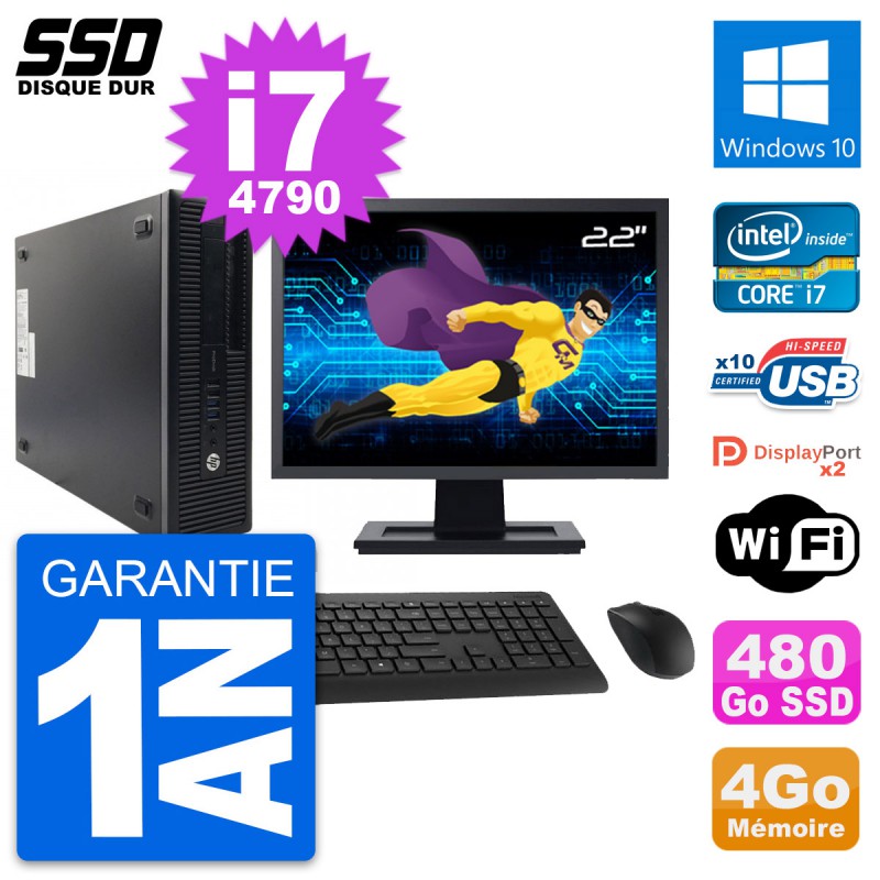 PC HP 600 G1 SFF Ecran 22" Intel Core i7-4790 RAM 4Go SSD 480Go Windows 10 Wifi