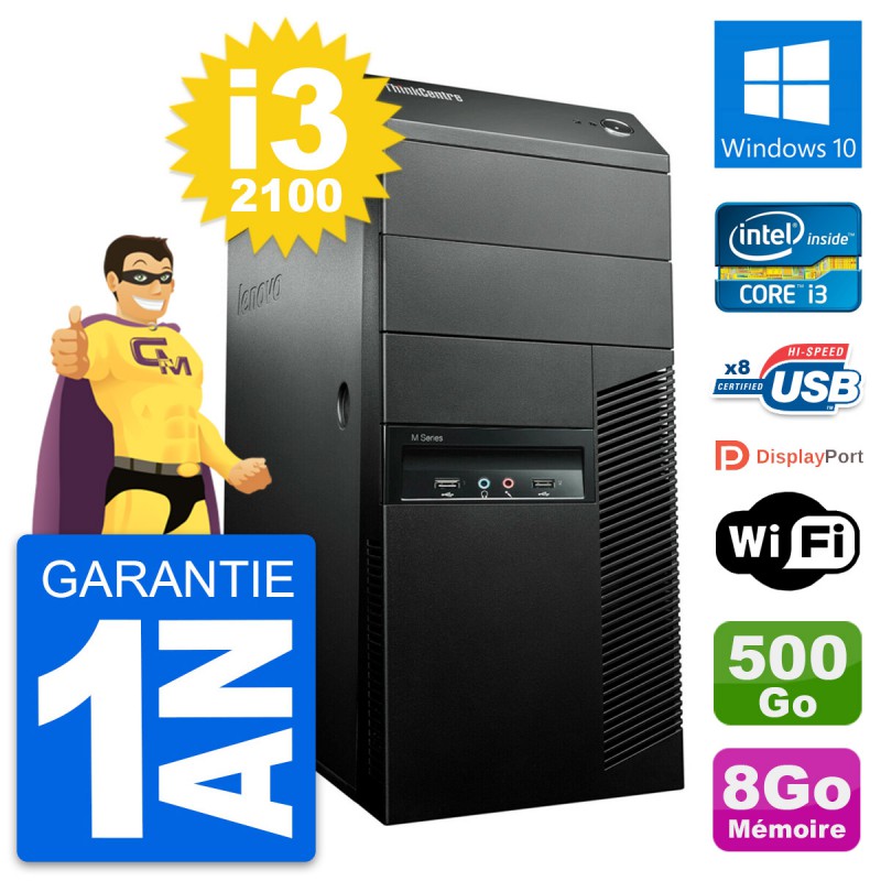 PC Tour Lenovo M91p Intel Core i3-2100 RAM 8Go Disque Dur 500Go Windows 10 Wifi