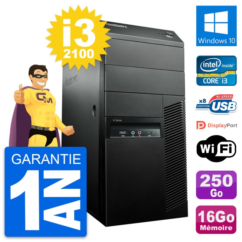 PC Tour Lenovo M91p Intel Core i3-2100 RAM 16Go Disque Dur 250Go Windows 10 Wifi