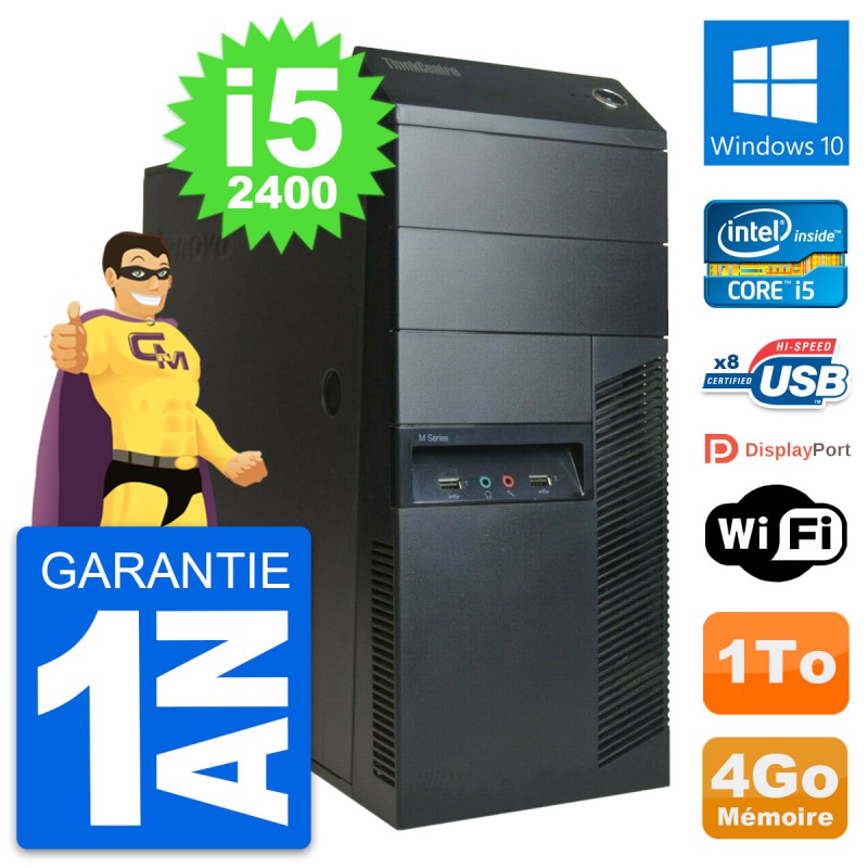 PC Tour Lenovo ThinkCentre M91p - Intel Core i5-2400 3.1 Ghz (6 Mo) - 4 Go DDR3 - Disque Dur 3,5" 1 To - Clef Wifi USB - Windows 10 - Garantie 1 an.