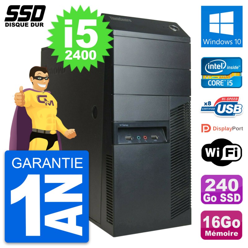 PC Tour Lenovo ThinkCentre M91p - Intel Core i5-2400 3.1 Ghz (6 Mo) - 16 Go DDR3 - Disque Dur SSD 240 Go - Clef Wifi USB - Windows 10 - Garantie 1 an.