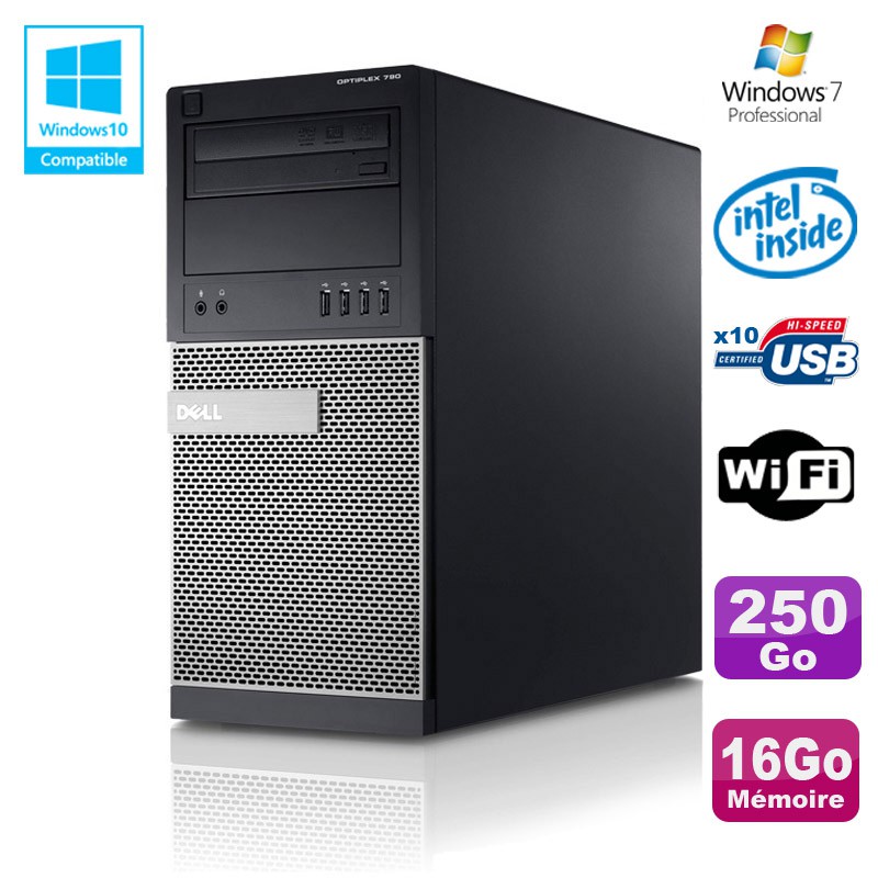 PC Tour Dell Optiplex 790 Intel G630 2,7Ghz 16Go Disque 250Go DVD WIFI Win 7