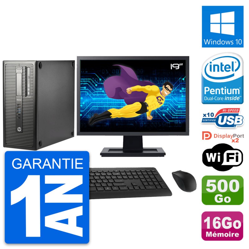 PC Tour HP 800 G1 Ecran 19" Intel G3220 RAM 16Go Disque 500Go Windows 10 Wifi
