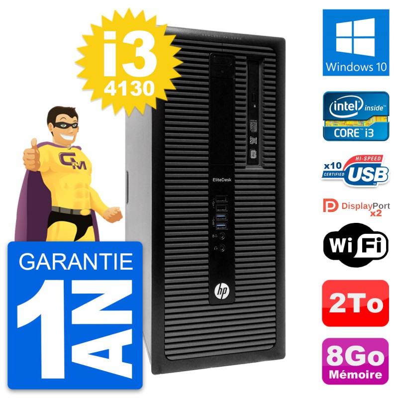 PC Tour HP EliteDesk 800 G1 - Intel Core i3-4130 3.4 Ghz (3 Mo) - 8 Go DDR3 - Disque Dur 3,5" 2 To - Graveur DVD - Clef Wifi USB - Windows 10 - Garantie 1 an.