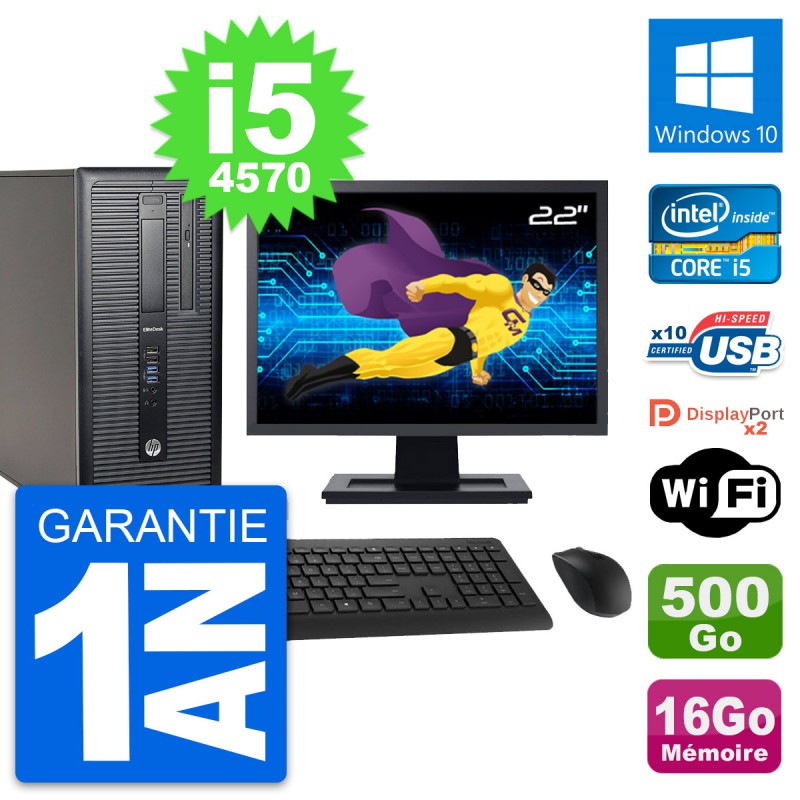 PC Tour HP 800 G1 Ecran 22" Intel i5-4570 RAM 16Go Disque 500Go Windows 10 Wifi