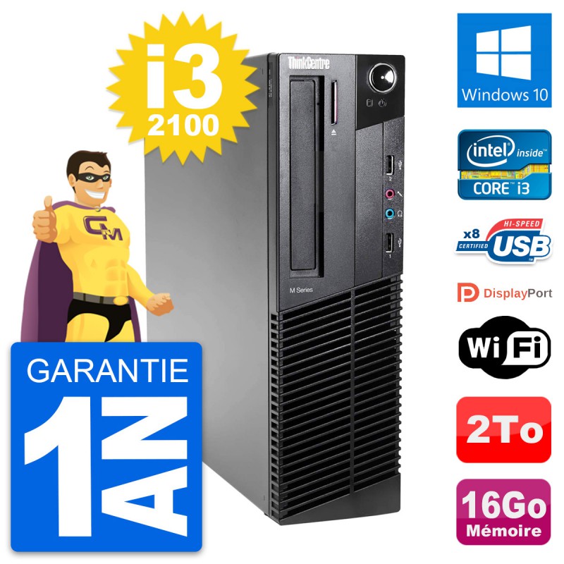 PC Lenovo ThinkCentre M82 SFF Intel i3-2100 RAM 16Go Disque 2To Windows 10 Wifi