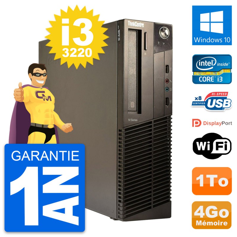 PC Lenovo ThinkCentre M82 SFF Intel i3-3220 RAM 4Go Disque 1To Windows 10 Wifi