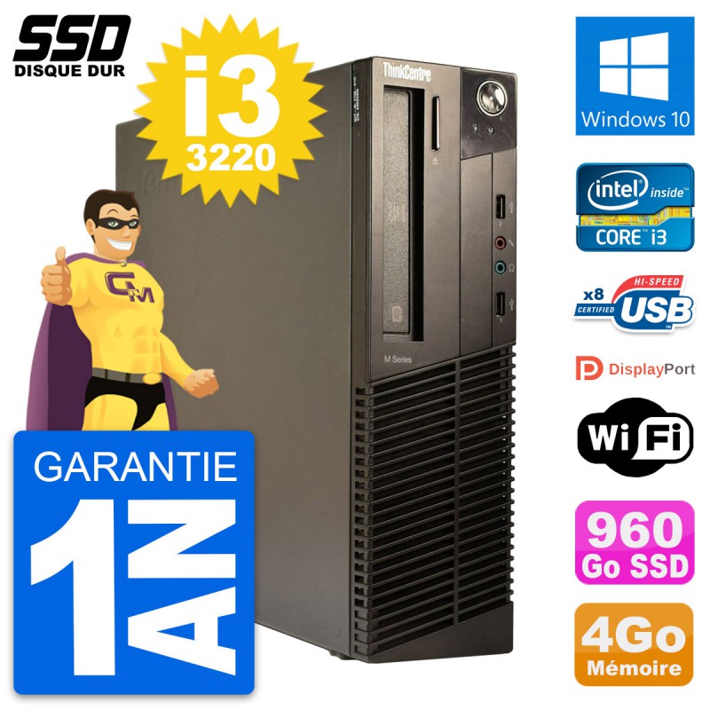 PC Lenovo ThinkCentre M82 SFF Intel i3-3220 RAM 4Go SSD 960Go Windows 10 Wifi