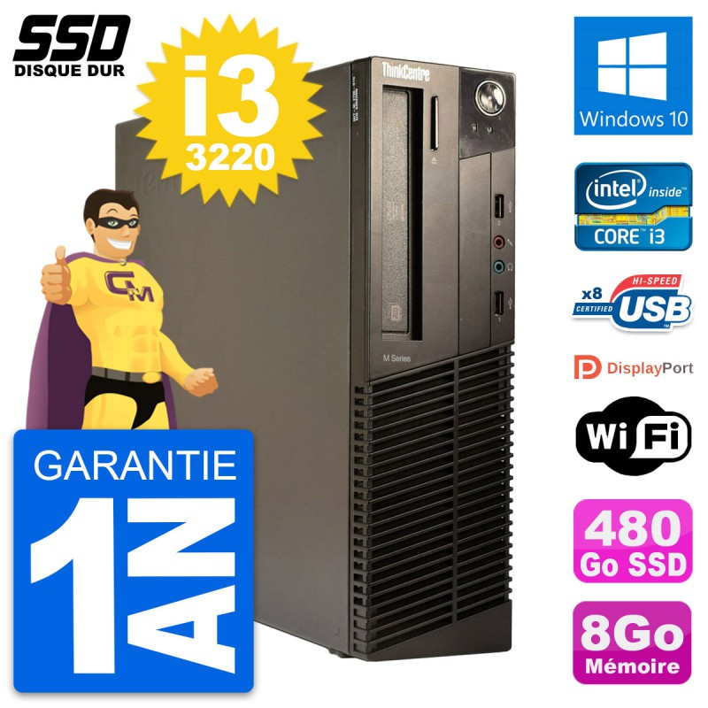 PC Lenovo ThinkCentre M82 SFF - Intel Core i3-3220 3.3 Ghz (3 Mo) - 8 Go DDR3 - Disque Dur SSD 480 Go - Graveur DVD - Clef Wifi USB - Windows 10 - Garantie 1 an.
