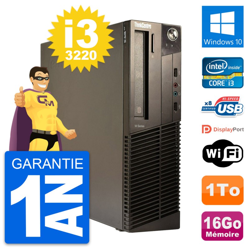 PC Lenovo ThinkCentre M82 SFF Intel i3-3220 RAM 16Go Disque 1To Windows 10 Wifi