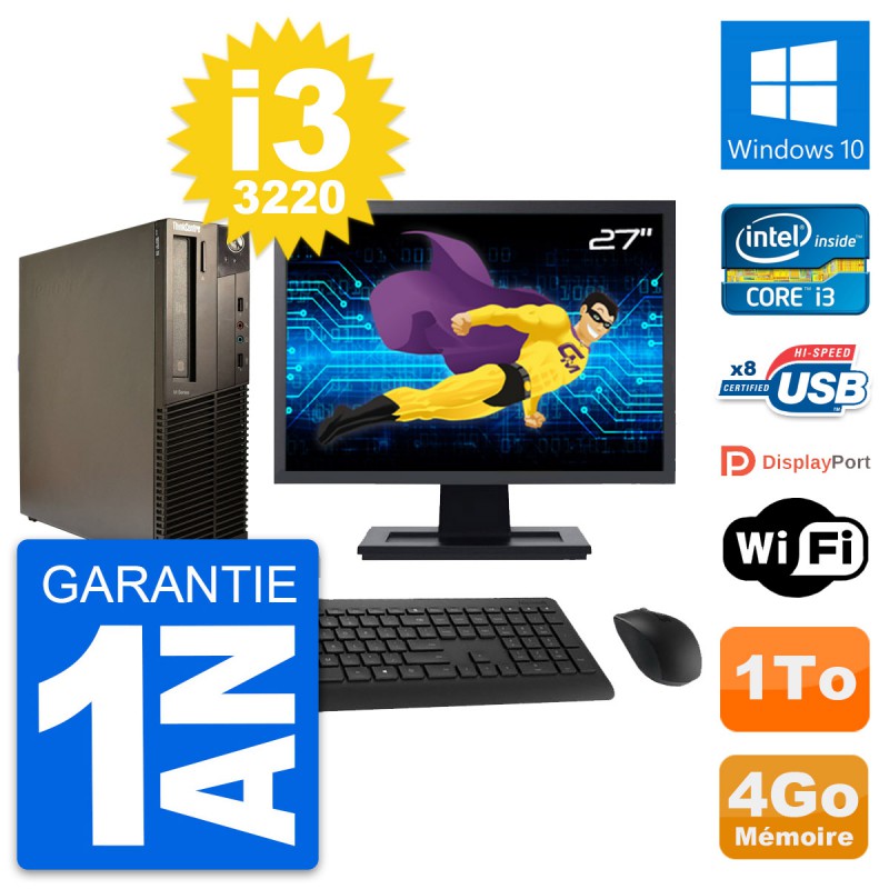 PC Lenovo M82 SFF Ecran 27" Intel i3-3220 RAM 4Go Disque Dur 1To Windows 10 Wifi