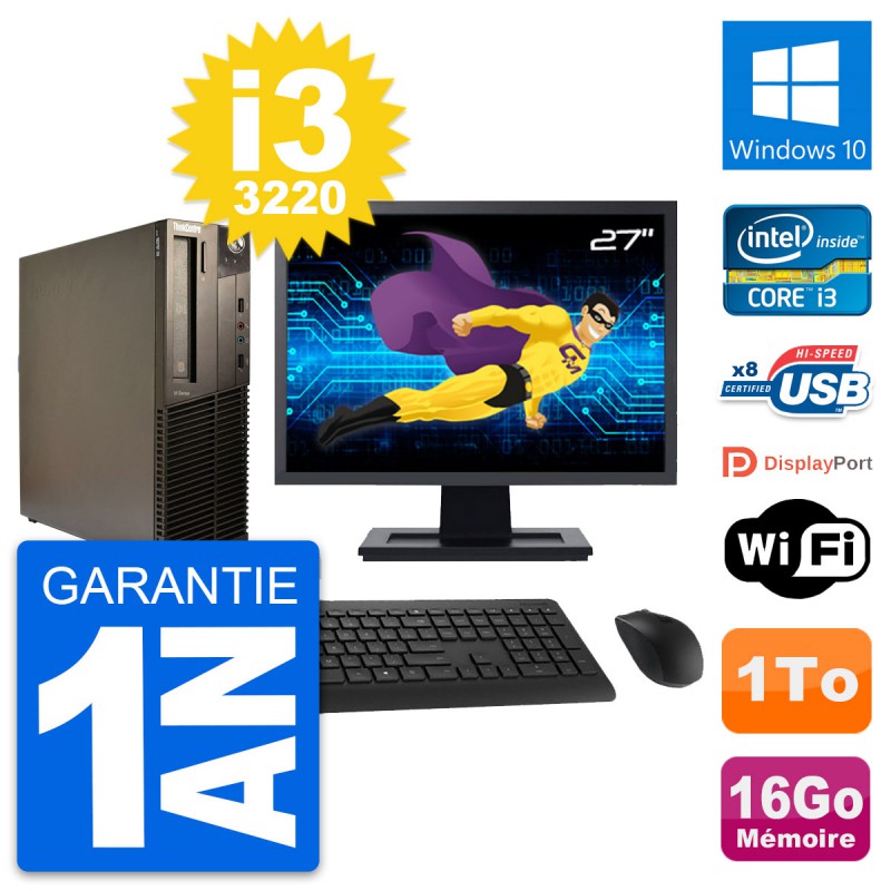 PC Lenovo M82 SFF Ecran 27" Intel i3-3220 RAM 16Go Disque 1To Windows 10 Wifi