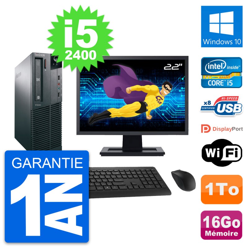 PC Lenovo M82 SFF Ecran 22" Intel i5-2400 RAM 16Go Disque 1To Windows 10 Wifi