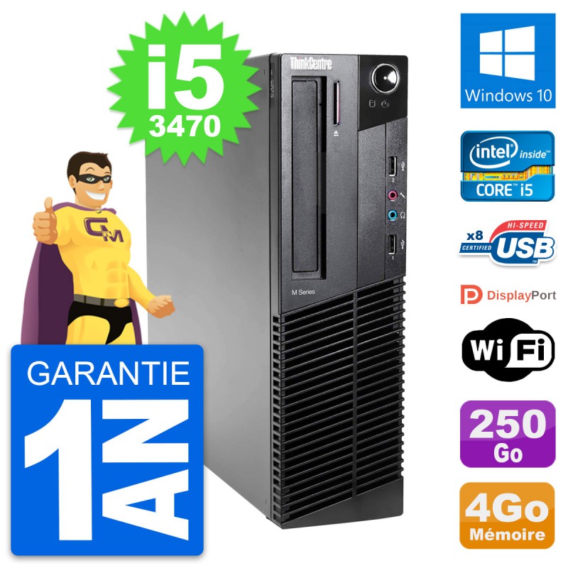 PC Lenovo ThinkCentre M82 SFF Intel i5-3470 RAM 4Go Disque 250Go Windows 10 Wifi