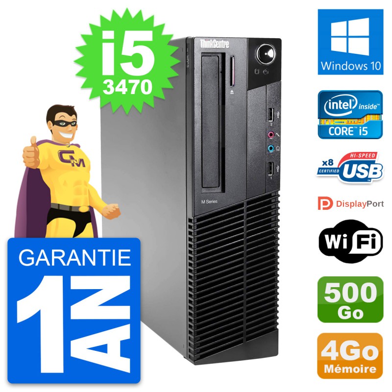 PC Lenovo ThinkCentre M82 SFF Intel i5-3470 RAM 4Go Disque 500Go Windows 10 Wifi
