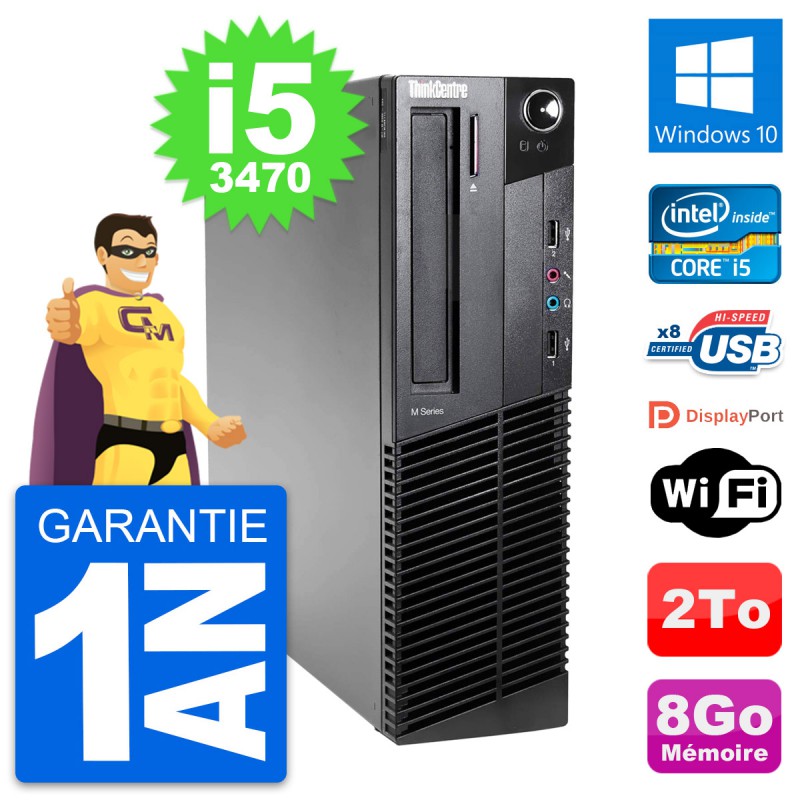 PC Lenovo ThinkCentre M82 SFF Intel i5-3470 RAM 8Go Disque 2To Windows 10 Wifi