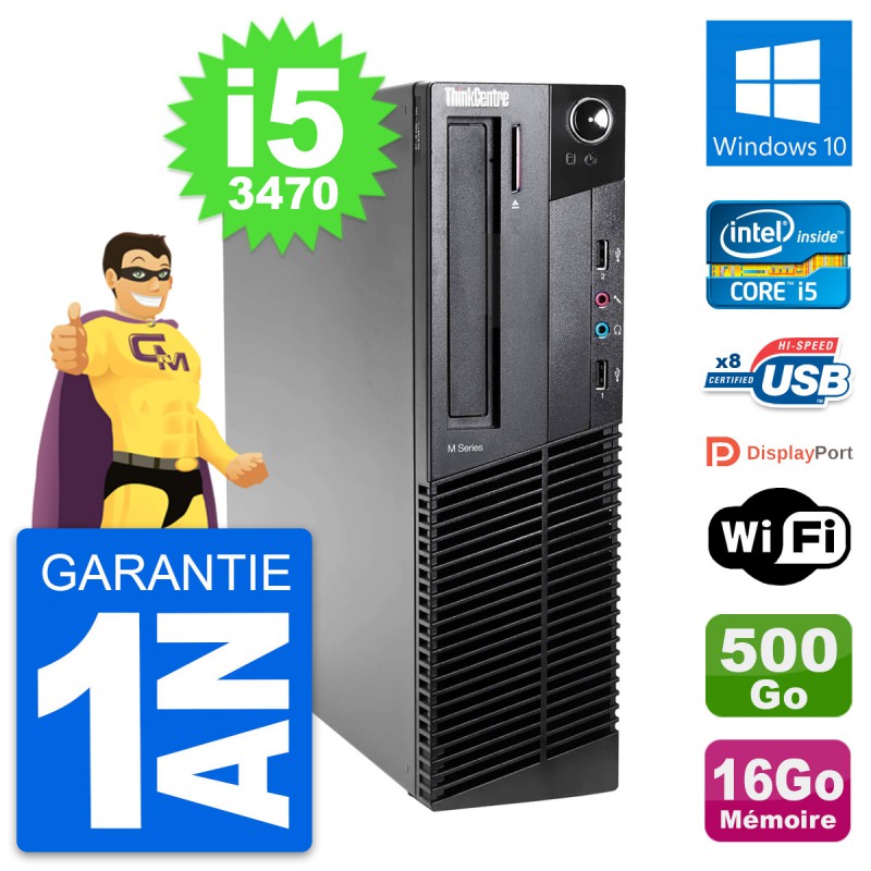 PC Lenovo ThinkCentre M82 SFF Core i5-3470 RAM 16Go Disque 500Go Windows 10 Wifi