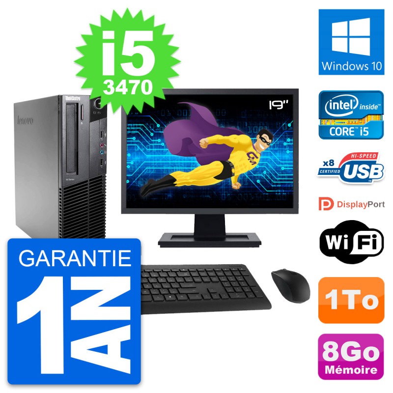 PC Lenovo M82 SFF Ecran 19" Intel i5-3470 RAM 8Go Disque Dur 1To Windows 10 Wifi