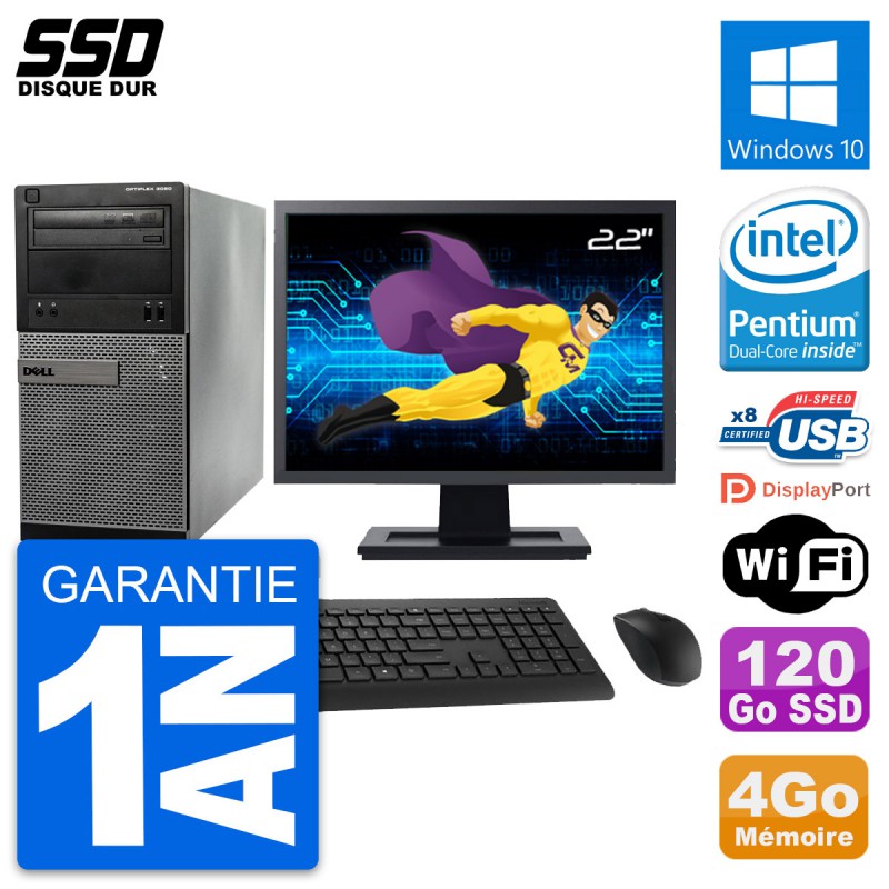 PC Tour Dell 3020 SFF - Intel Pentium G3220 3.0 Ghz (3 Mo) - 4 Go DDR3 - Disque Dur SSD 120 Go - Graveur DVD - Clef Wifi USB - Windows 10 - Livré avec Ecran 22" + clavier + souris (Marques et modèles variables) - Garantie 1 an.
