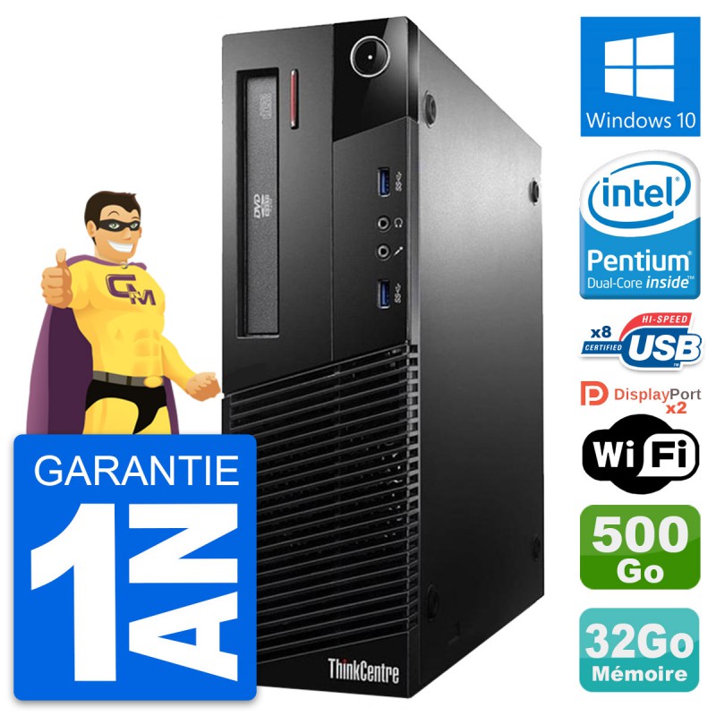 PC Lenovo ThinkCentre M93p SFF (Slim) - Intel Pentium G3220 3.0 Ghz (3 Mo) - 32 Go DDR3 - Disque Dur 3,5" 500 Go - Graveur DVD - Clef Wifi USB - Windows 10 - Garantie 1 an.