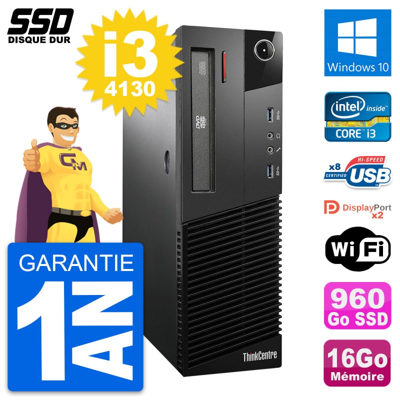 PC Lenovo ThinkCentre M93p SFF Intel i3-4130 RAM 16Go SSD 960Go Windows 10 Wifi
