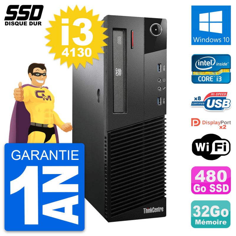 PC Lenovo ThinkCentre M93p SFF Intel i3-4130 RAM 32Go SSD 480Go Windows 10 Wifi