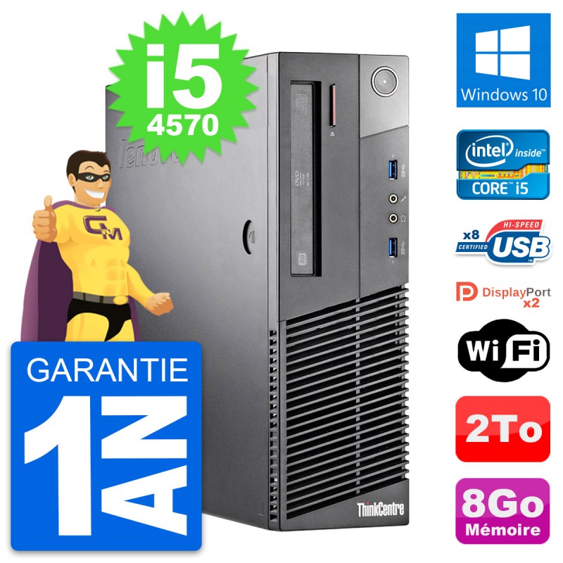 PC Lenovo ThinkCentre M93p SFF Intel i5-4570 RAM 8Go Disque 2To Windows 10 Wifi