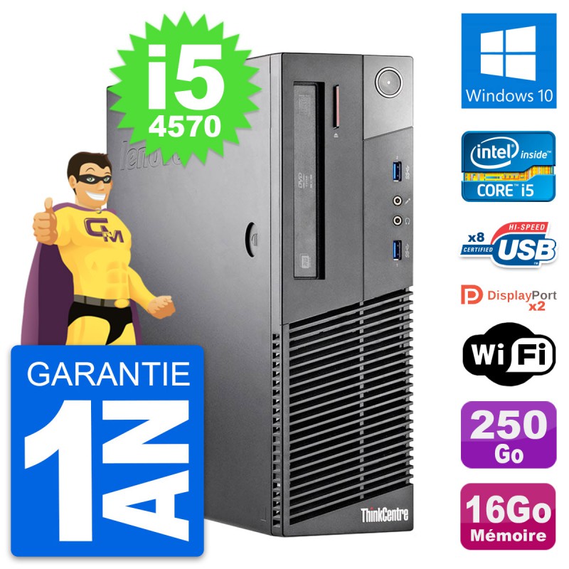 PC Lenovo ThinkCentre M93p SFF i5-4570 RAM 16Go Disque 250Go Windows 10 Wifi