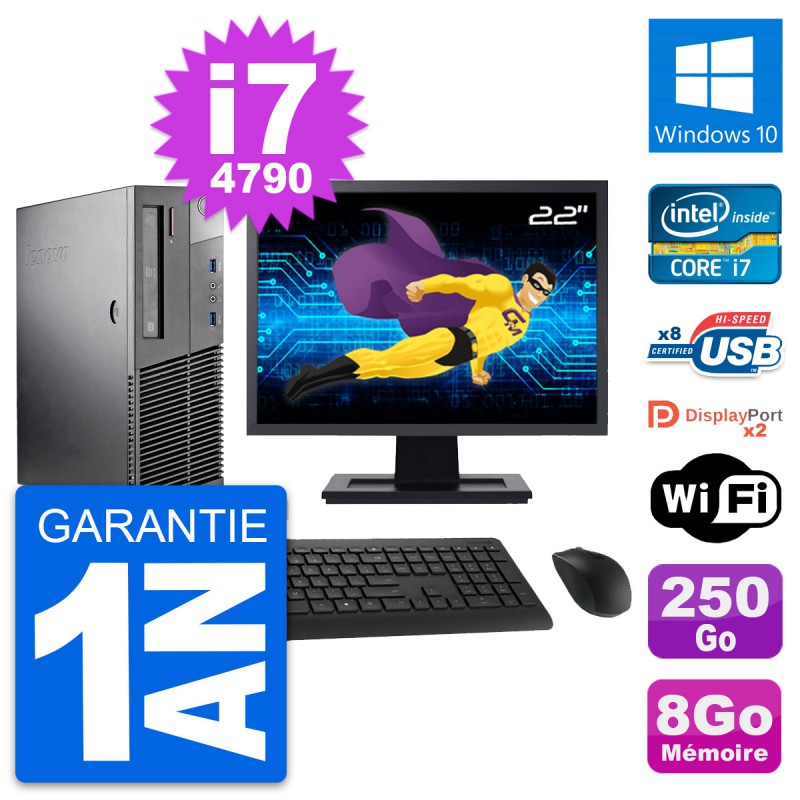 PC Lenovo M93p SFF Ecran 22" Intel i7-4790 RAM 8Go Disque 250Go Windows 10 Wifi