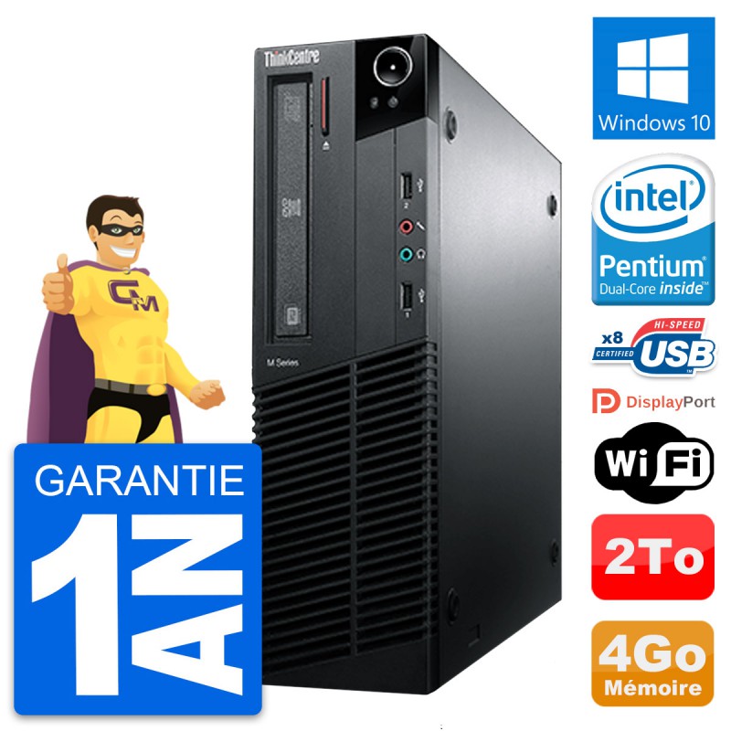 PC Lenovo ThinkCentre M81 SFF - Intel Pentium G630 2.7 Ghz (3 Mo) - 4 Go DDR3 - Disque Dur 3,5" 2 To - Graveur DVD - Clef Wifi USB - Windows 10 - Garantie 1 an.
