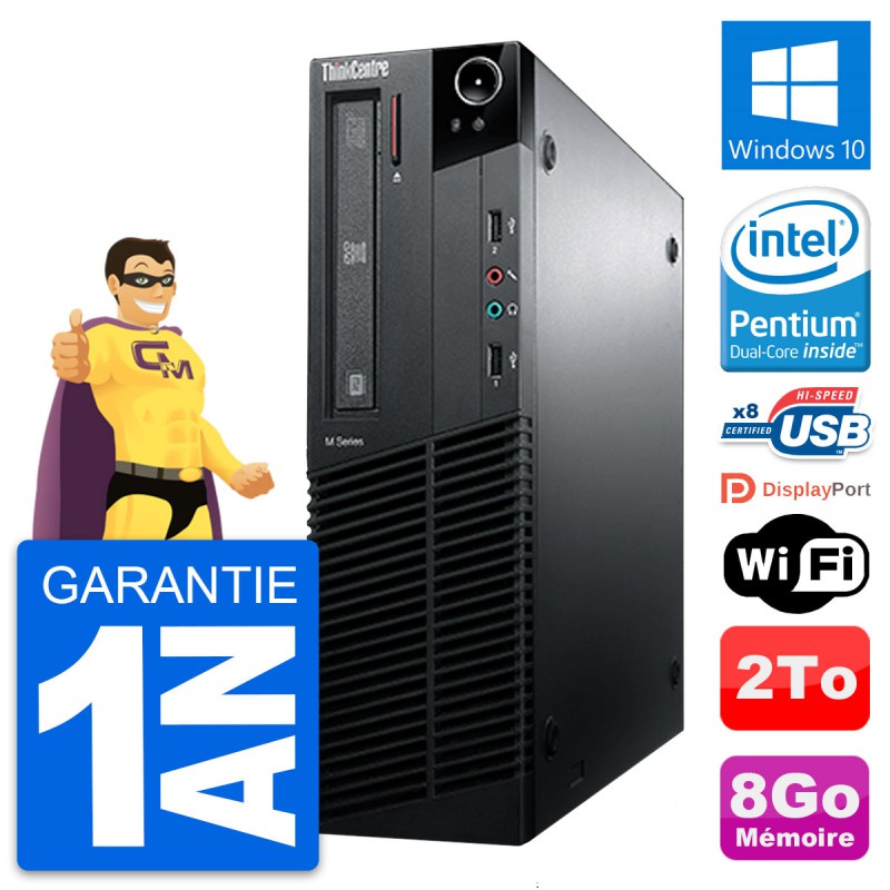 PC Lenovo ThinkCentre M81 SFF - Intel Pentium G630 2.7 Ghz (3 Mo) - 8 Go DDR3 - Disque Dur 3,5" 2 To - Graveur DVD - Clef Wifi USB - Windows 10 - Garantie 1 an.