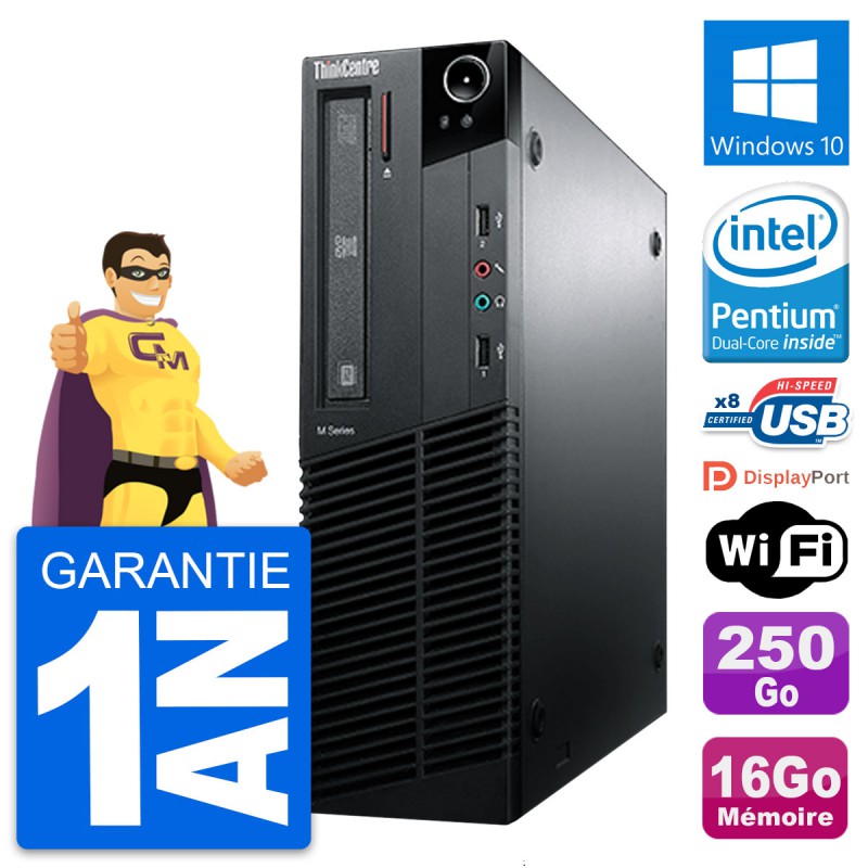 PC Lenovo ThinkCentre M81 SFF - Intel Pentium G630 2.7 Ghz (3 Mo) - 16 Go DDR3 - Disque Dur 3,5" 250 Go - Graveur DVD - Clef Wifi USB - Windows 10 - Garantie 1 an.