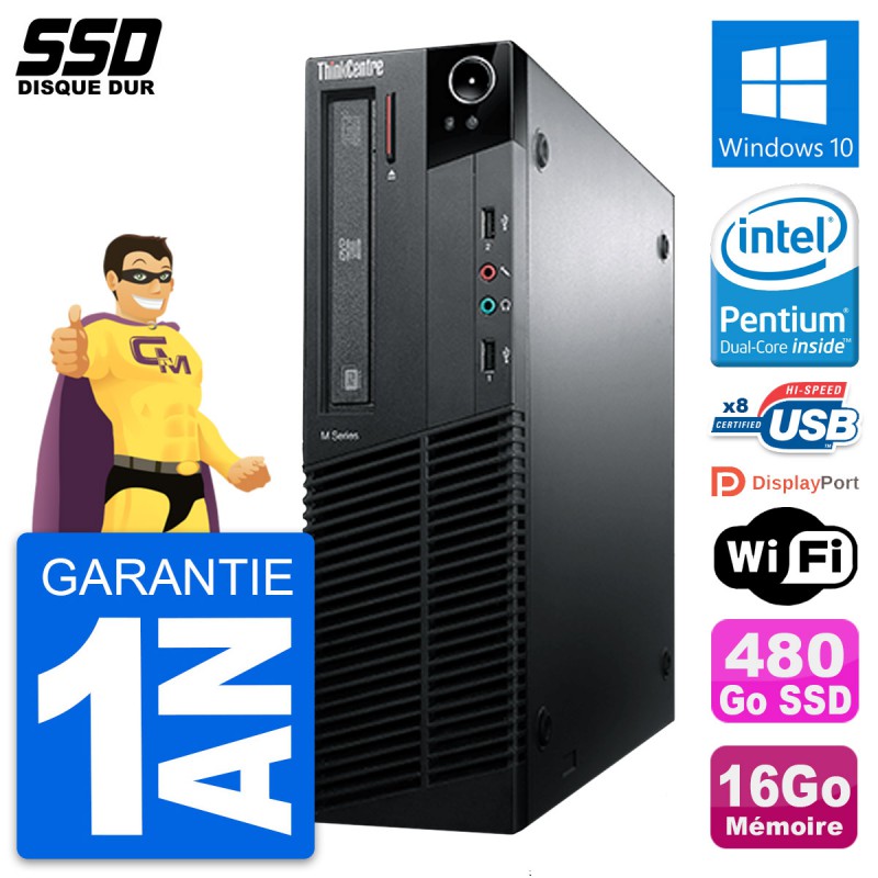 PC Lenovo ThinkCentre M81 SFF - Intel Pentium G630 2.7 Ghz (3 Mo) - 16 Go DDR3 - Disque Dur SSD 480 Go - Graveur DVD - Clef Wifi USB - Windows 10 - Garantie 1 an.