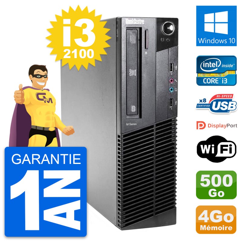 PC Lenovo ThinkCentre M81 SFF Intel i3-2100 RAM 4Go Disque 500Go Windows 10 Wifi