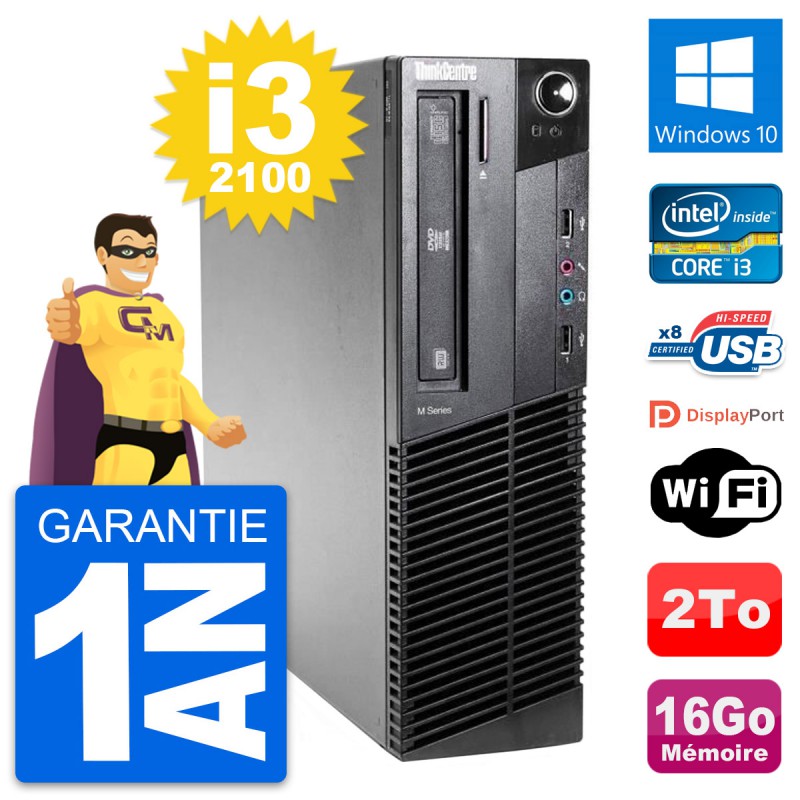PC Lenovo ThinkCentre M81 SFF Intel i3-2100 RAM 16Go Disque 2To Windows 10 Wifi