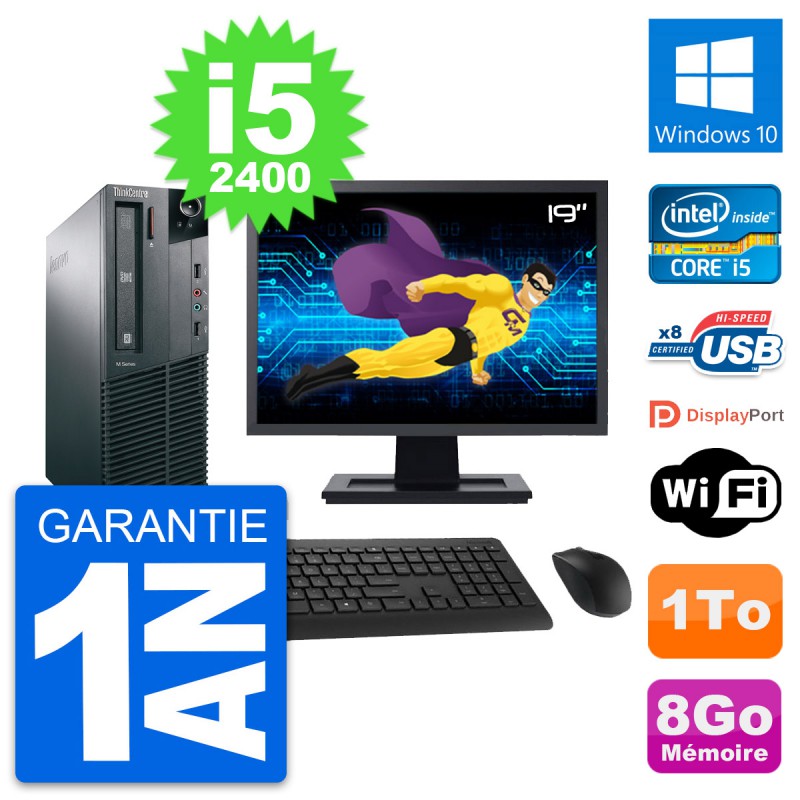 PC Lenovo M81 SFF Ecran 19" Intel i5-2400 RAM 8Go Disque Dur 1To Windows 10 Wifi