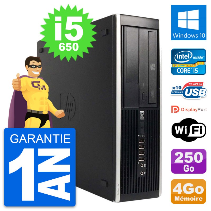 PC HP 8100 Elite SFF Intel Core i5-650 RAM 4Go Disque Dur 250Go Windows 10 Wifi