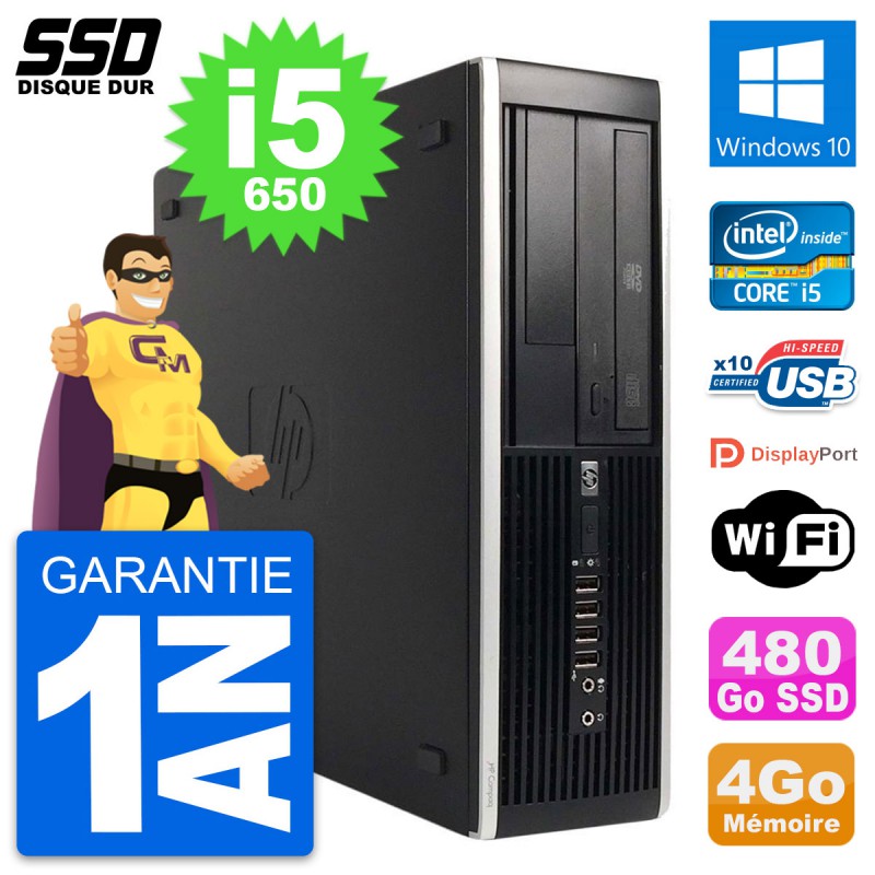 PC HP 8100 Elite SFF Intel Core i5-650 RAM 4Go SSD 480Go Windows 10 Wifi