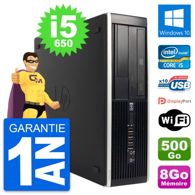PC HP 8100 Elite SFF - Intel Core i5-650 3.2 Ghz (4 Mo) - 8 Go DDR3 - Disque Dur 3,5" 500 Go - Graveur DVD - Clef Wifi USB - Windows 10 - Garantie 1 an.